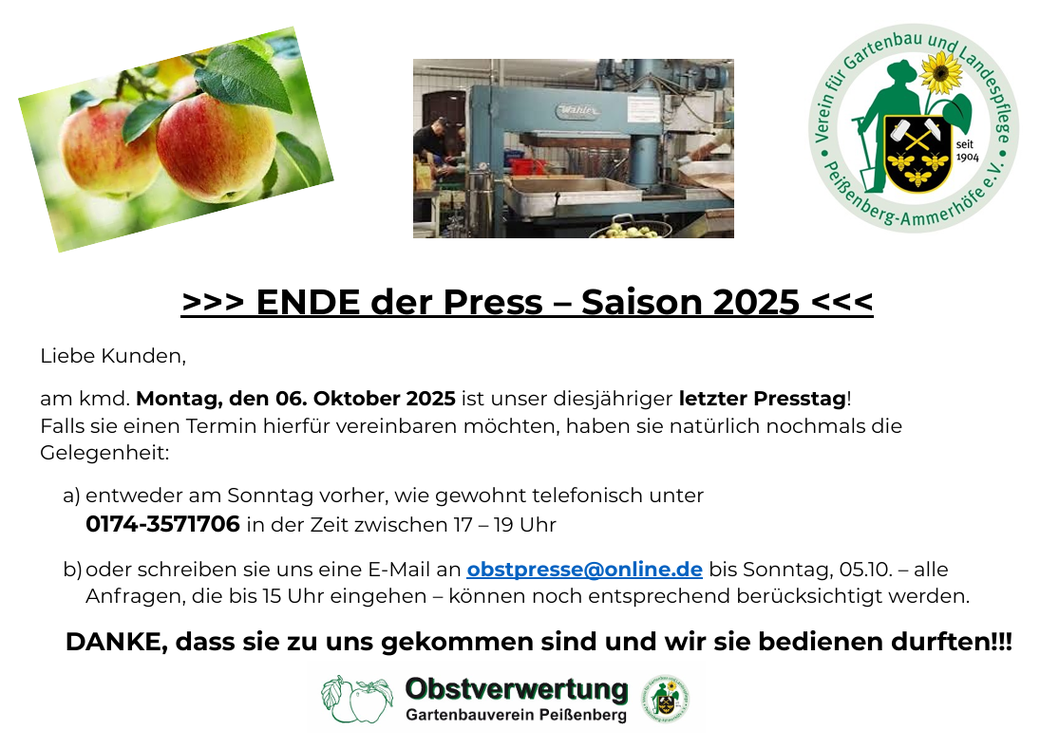 Die Termine können Sie unserem Jahresprogramm entnehmen. Wir bitten Sie, diese zu besuchen, da der Verein keine Baumpfleger mehr hat, die diese Arbeit für Sie erledigen könnten.